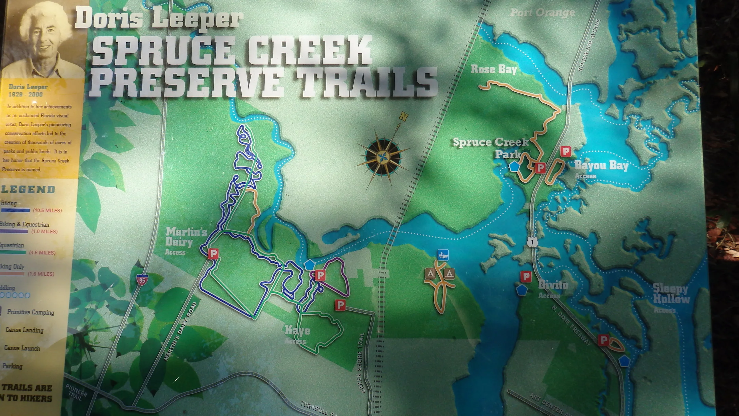 If you're looking for somewhere new to hike and want it to have some scenic view at the end to enjoy, look no further than Doris Leeper Spruce Creek Preserve . The preserve has many entrances which offer different amenities but the one I visit is the Martin Dairy Road entrance. After taking a side road then driving over a bumpy dirt road, you get to the preserve.