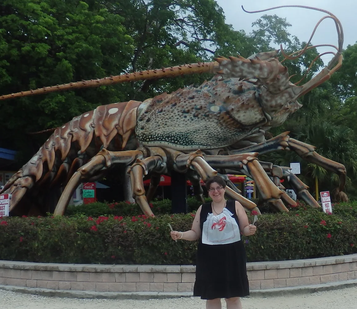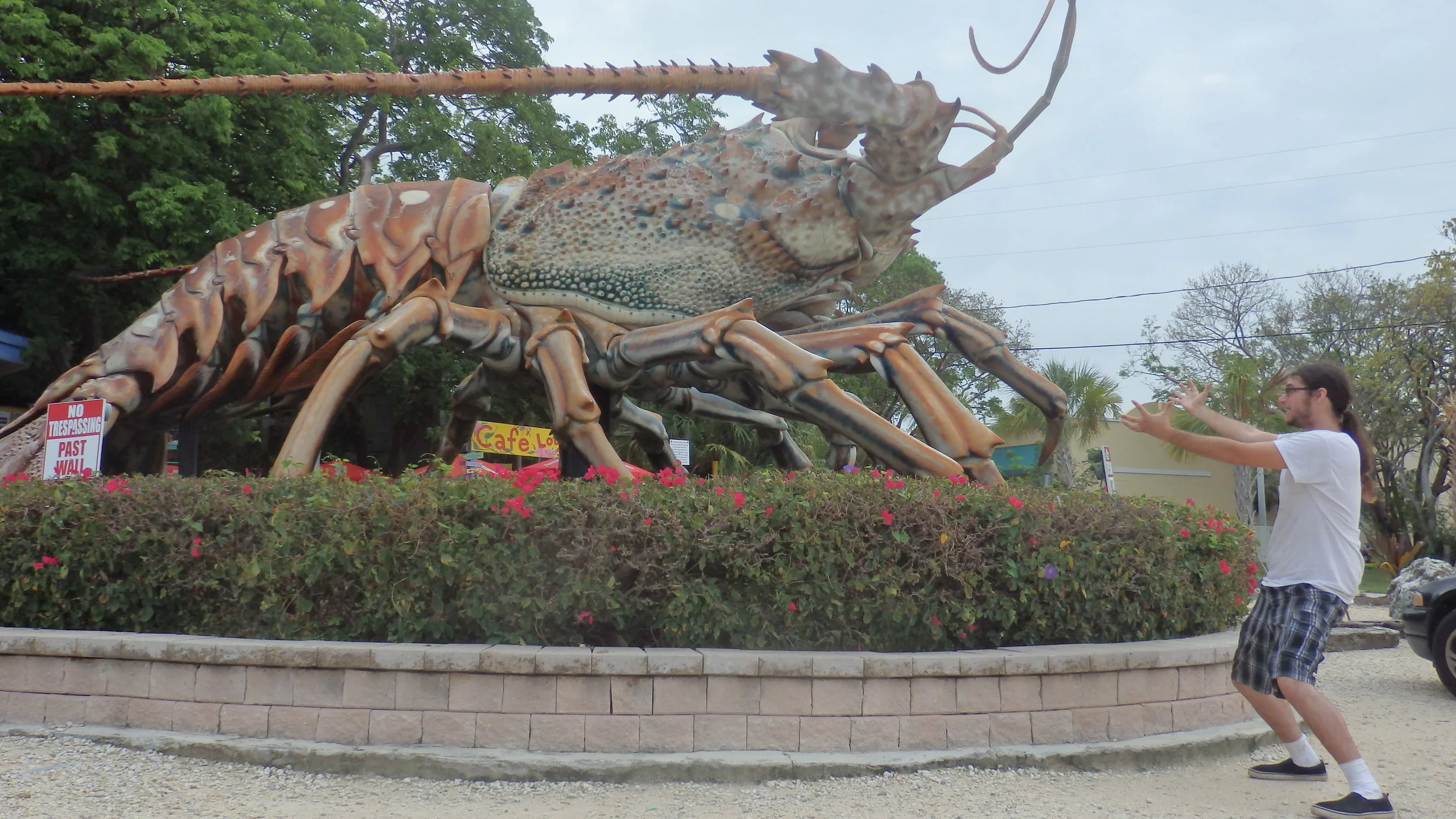 Next island thatwe went to was Islamorada Key. We found the 30-foot Lobster and I used my Lobster bib, props likes fork and knives to make a funny picture. J.J. did a funny picture of it trying to eat him .
